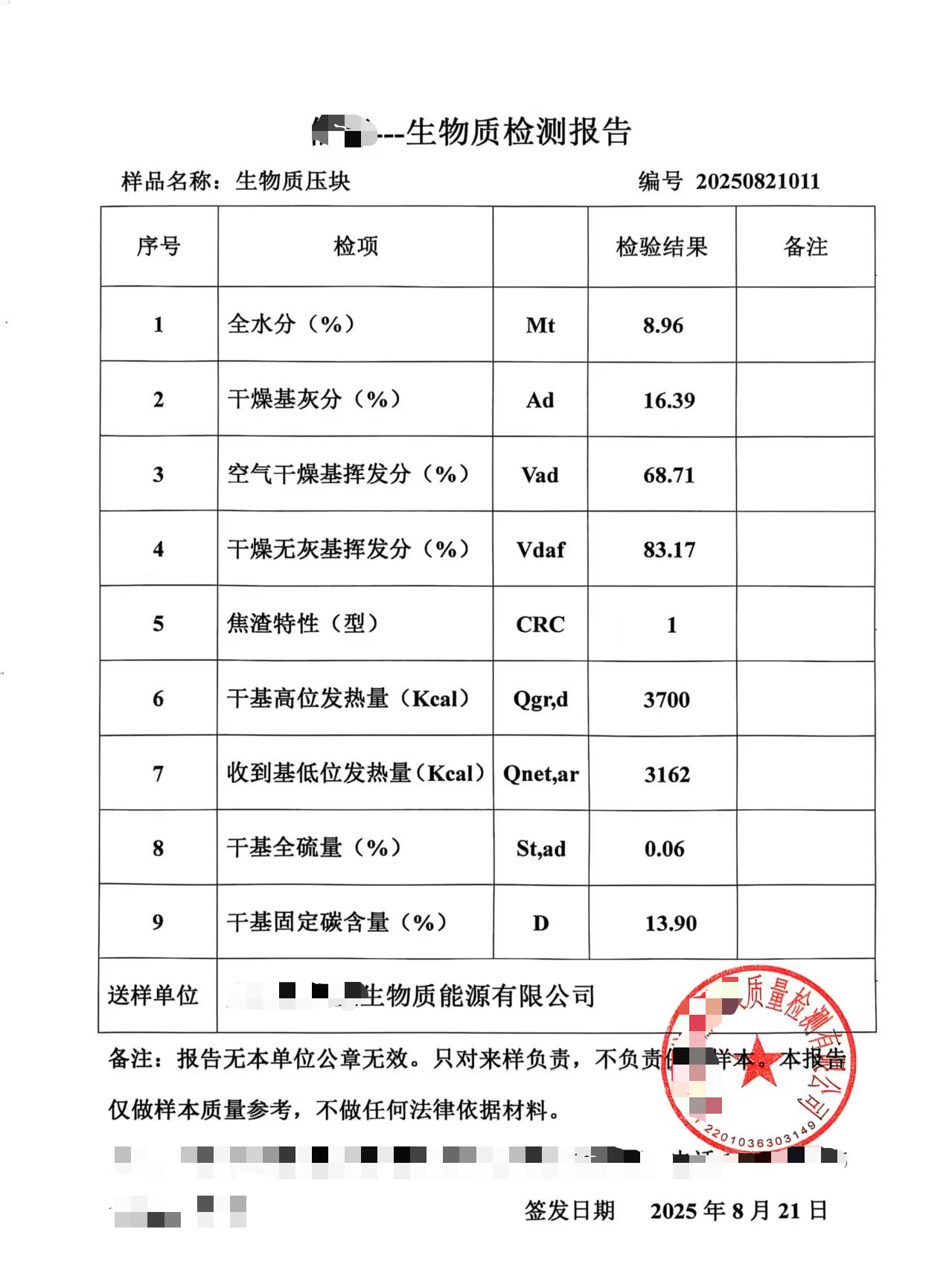 执行标准:NB/T 34024—2015 生物质成型燃料质量分级