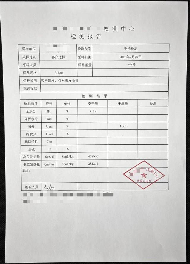 燃料类型及等级: 林业生物质质颗粒燃料 / 2级