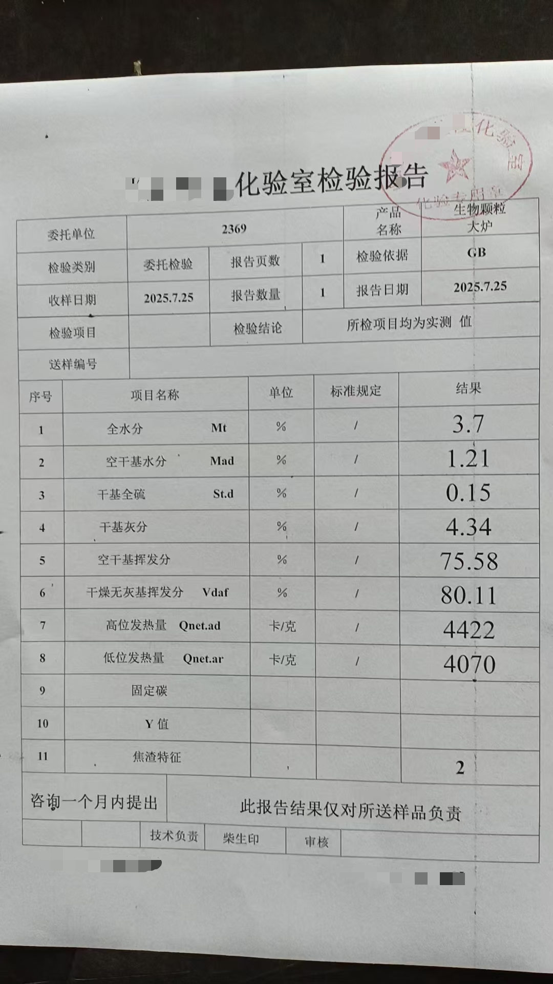 燃料类型及等级: 林业生物质质颗粒燃料 / 3级